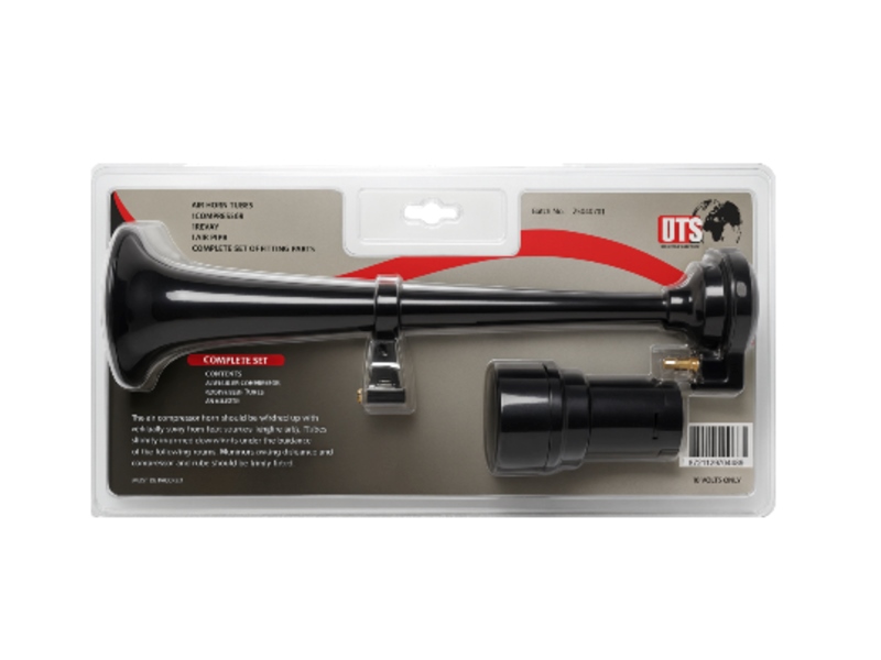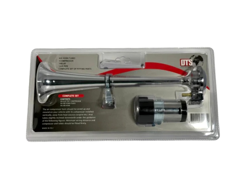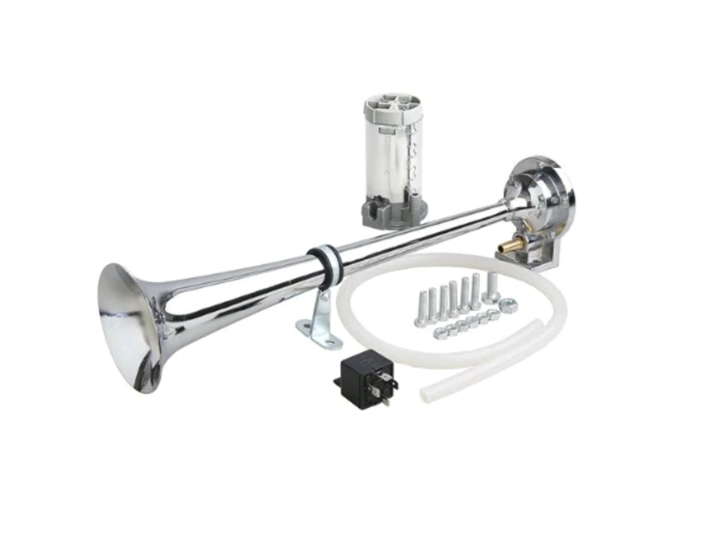 Inkluderet indeholder lufthorn, kompressor, arbejdsrelæ, bolte og møtrikker – alt klar til hurtig installation.