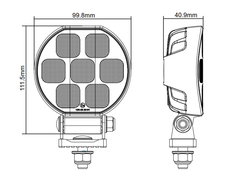 Rund E-Godkendt LED lampe med 21 kraftige Osram LEDs. Alu-hus med kraftig pulver-lakering og beslag i rustfrit stål. Lysfarven er 5700K og optikken på 90 grader giver en god og bred lysspredning