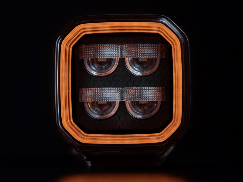 FOR9T 78W LED arbejdslygte med en unik No-Glare funktion og indbygget positionslys i Gul eller Rød.