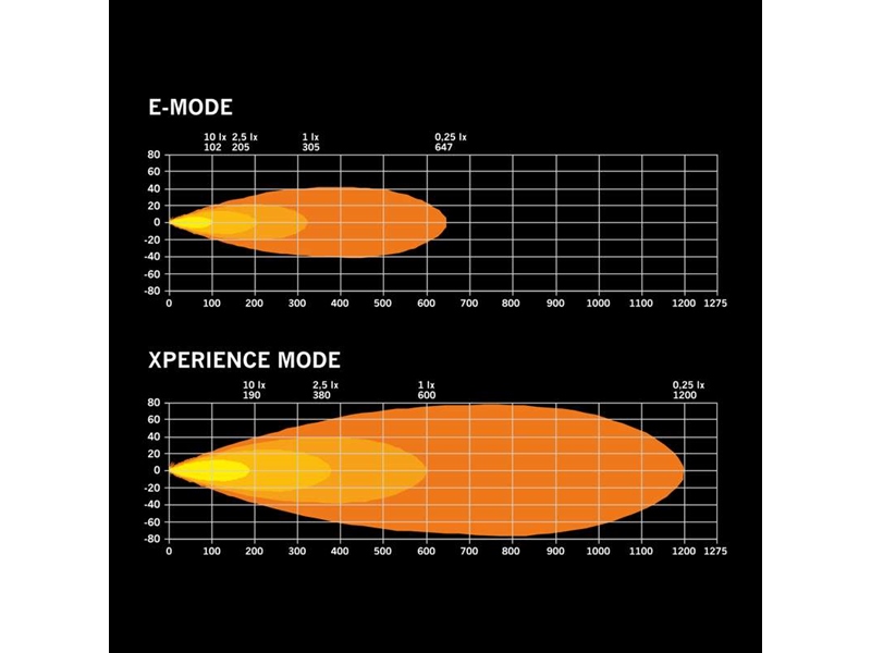 1 lux @E-mode: 305m / Xperience mode: 600m