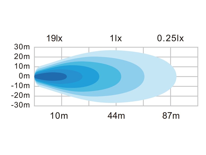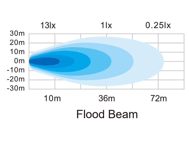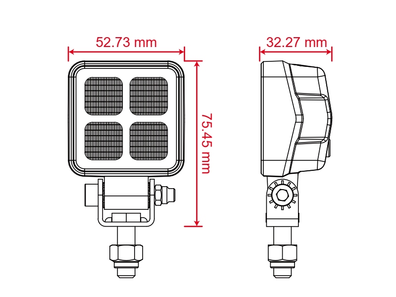 Alu-huset er lakeret med en kraftig pulver-lakering, og beslaget er i rustfrit stål. Lysfarven er 5700K, og optikken på 90 grader giver en god og bred lysspredning, der er yderst velegnet til arbejdslys / baklys.