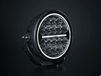 Stilren og moderne E-godkendt LED fjernlys med et kraftfuld lys, der med sit 3-delte dual color positionslys giver et helt specielt udseende. Fås som 7" eller 9".