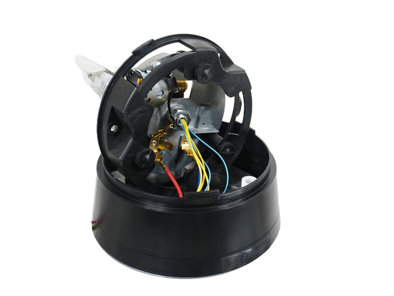 - Løsen møtrikken der holder pæren fast og pil den originale H1 pære ud. Klip ledningen der går op igennem basen