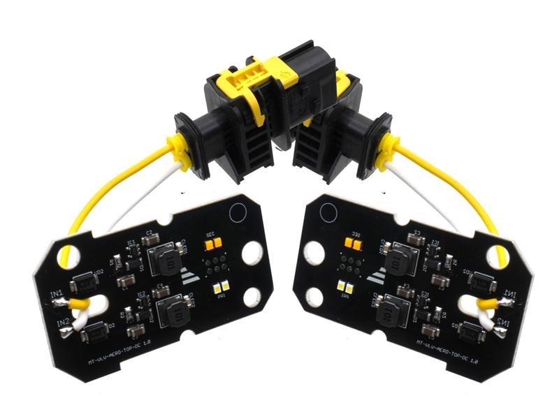 Ledningerne indsættes i det medfølgende stik. Ved single color skal rød (plus) tilsluttes stikben 1, og sort (minus) i stikben 2. Ved dual color kan du selv bestemme, men vær sikker på at begge lamper tilsluttes på samme måde.