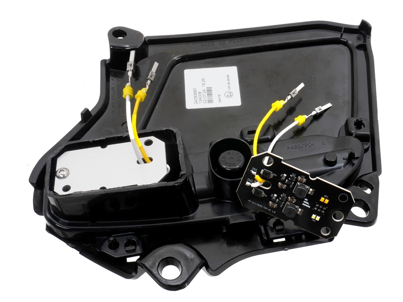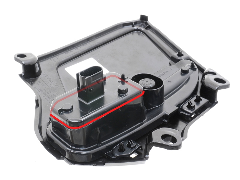 Lyskilden sidder i den firkantede blok på bagsiden, hvor også stikket sidder.