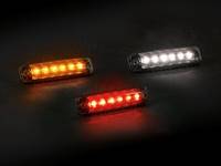 Dark-series SLIM LED markeringslamper med 6 stærke LEDs fra Fristom. Fås i 3 farver. Kompatibel med 12V/24V
