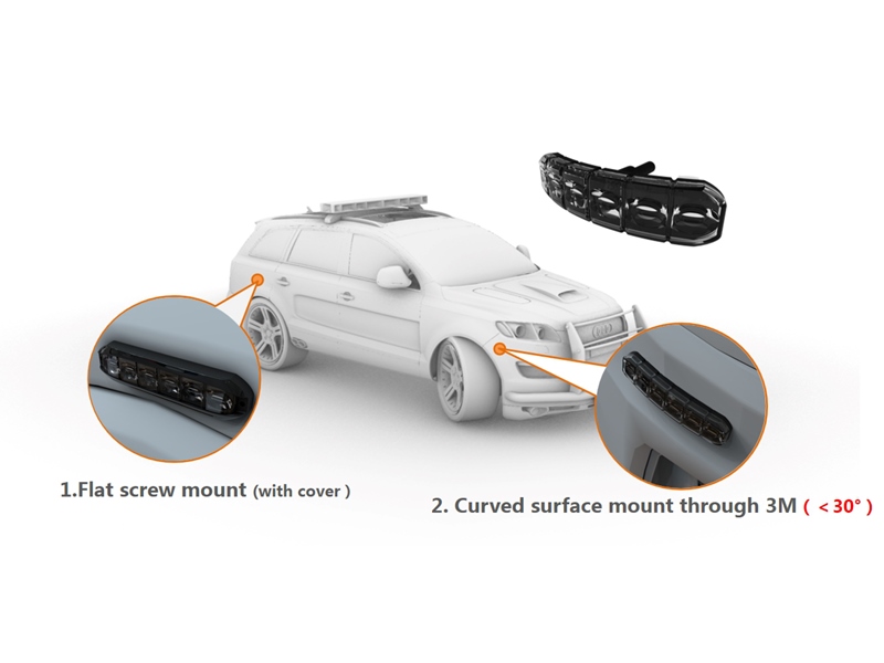 Fleksibel og flad LED advarselslampe, der kan tilsluttes til både 12V og 24V. Det gør det muligt, at LED advarselslampen kan bruges til mange forskellige køretøjer såsom bil, lastbil og nok især velegnet til MC. LED Lampen kan bøjes op til 120 grader, og gøres fast med dobbeltklæbende tape, der sidder på bagsiden af lampen.
