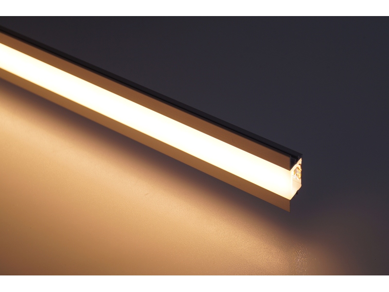 Annodiseret T-profil med lav højde. Benyttes til indbygning i gulv, væg og loft. Limes eller skrues fast.