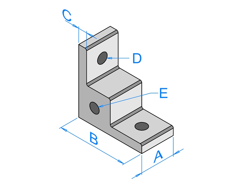 Hjørnebeslag i solidt aluminium, med M6 sidehul, der kan bruges til fod, hjul eller til at fastgøre en plade
