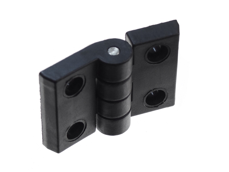 Plastik og aluminium-hænglser, der kan bruges til låg og døre. Hængslet fastgøres med M6 bolte.