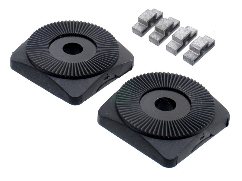 To nylonplader med tænder låser i 5° intervaller. Ideel til vinkling mellem dele, justeres let med et håndtag.