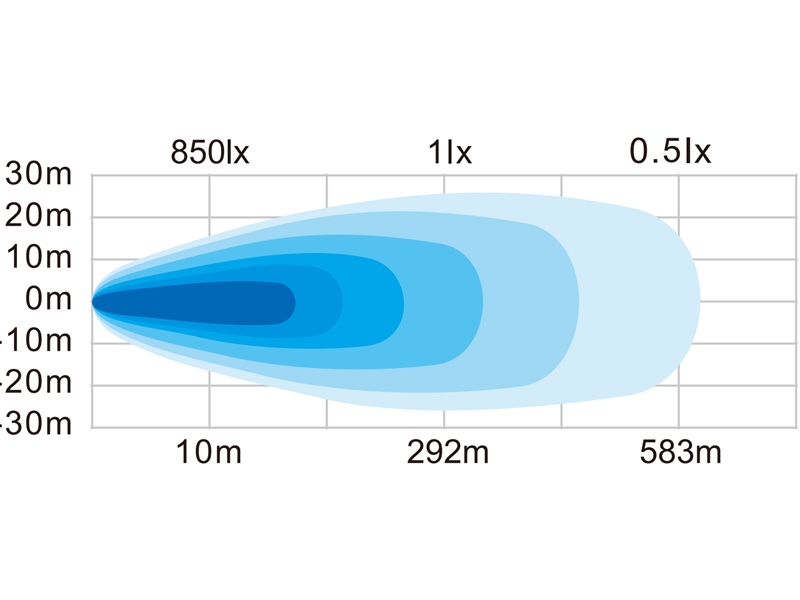 Lux @ 10m (lx) / Drivstråle: 1350