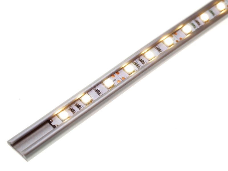 Flot profil til LED lysbånd, udført i fleksibelt plastik med metallic-grå overflade. En flot og økonomisk montering af LED lysbånd.